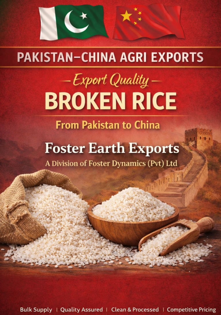 Foster Earth Exports sources broken rice from certified rice mills in Punjab, where advanced milling, polishing, and grading techniques are applied. Every shipment undergoes strict quality checks to ensure low moisture content, uniform grain size, and freedom from foreign matter, in line with Chinese import regulations.